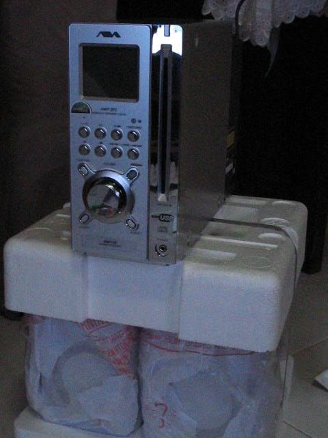 Next on the agenda...hahha...so formal hor? This morning my sista and parents went to Creative sales at Jurong East. My sista actually helped me to buy some things since I could not go. She bought me my wireless card so that I need not use wire to connect to the internet. Now I can even bring my lappy go TOILET! Haha...Then she also bought for me an MP3 player...Hey dirt cheap man! It's only $19.90...It's only 64MB but who cares! As long as I have an MP3 player I'm more than happy. So here're the pics of the newest addition to my family. My sis bought hers too...but hers is nicer...she can afford lah..ppl still get DUIT COLLECTION mah...!