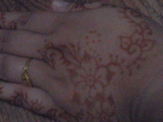 Did spring cleaning just now..Had to help mama put up the curtains. Wished I was married so that I cld pass the job to Ayang! Heheheh..bully sey!! Then went to have my hands hennaed! Red did my hand for me while Jewel did it for my sis. They are so good at it man! Kudos to u....now my hands are beautified! :D