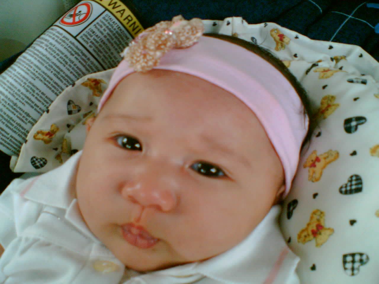 On Sunday, went to wedding reception with my parents and sista. One of my distant second cousins got married...hmmm I'm not tat close tho'. Well, my mum dressed Atikah up in her Ralph Lauren dress that she got as a gift. She also dolled Atikah up wit a lovely hair band. She looks cuteeeeeeeeeee I muz admit! (Eh, bukan masuk bakul angkat sendri hor!) See for urself!